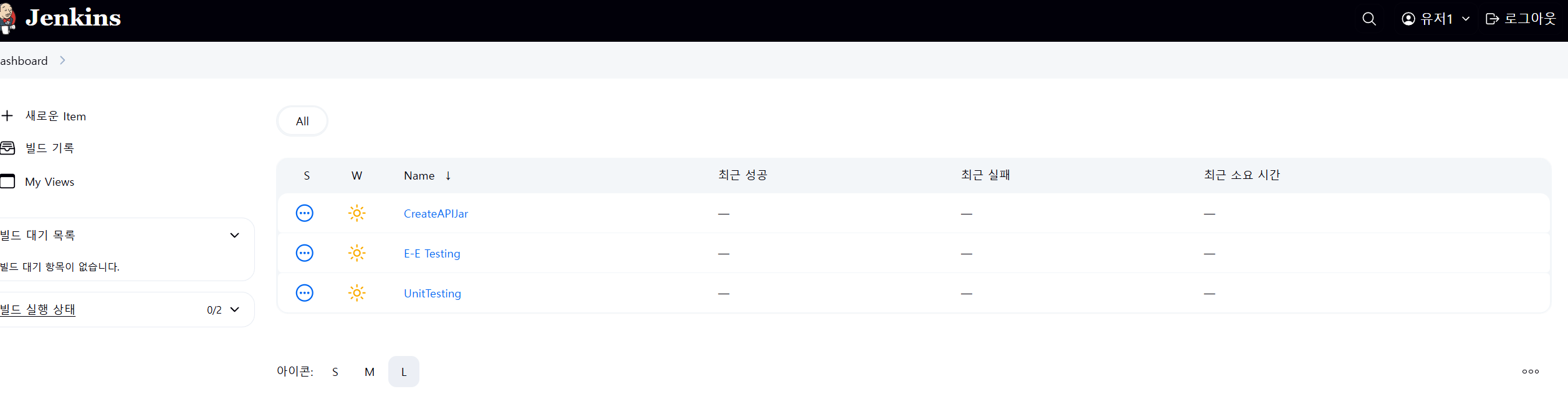저장하고, 유저1로 로그인하면 왼쪽Jenkins 관리 메뉴가 사라짐으로써 사용할 수 없다.