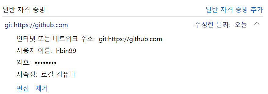 d. 시작메뉴 > 자격증명 관리자 → 자격증명이 저장된 것 확인