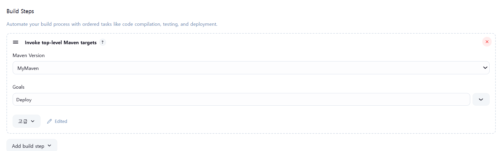 배치 명령 mvn deploy가 포함된 Deploying CalculatorAPI라는 스테이지를 추가한다.