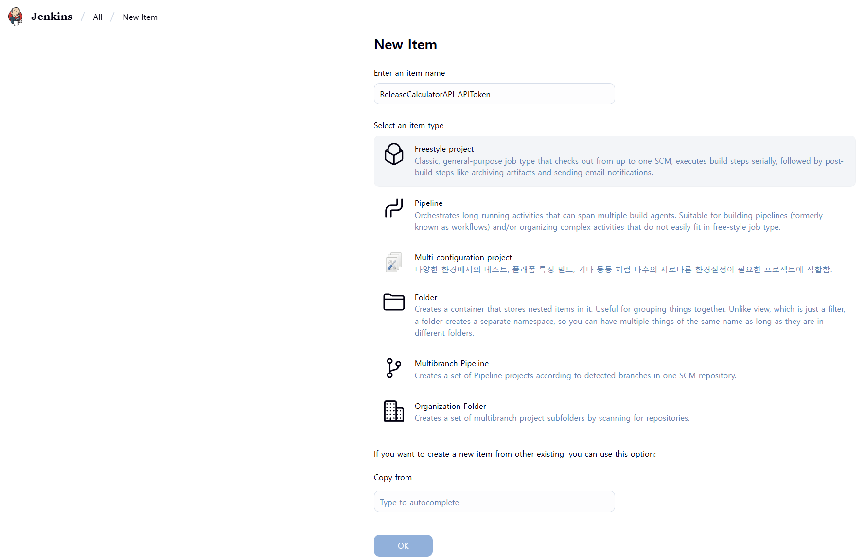 2단계 : 젠킨스 대시보드에서 프리스타일 작업 생성